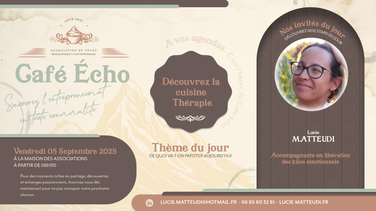 Lors de cette conférence, je vous expliquerai comment la cuisine peut devenir un véritable support de bien-être, puis nous passerons à la pratique avec un atelier de dégustation en pleine conscience.